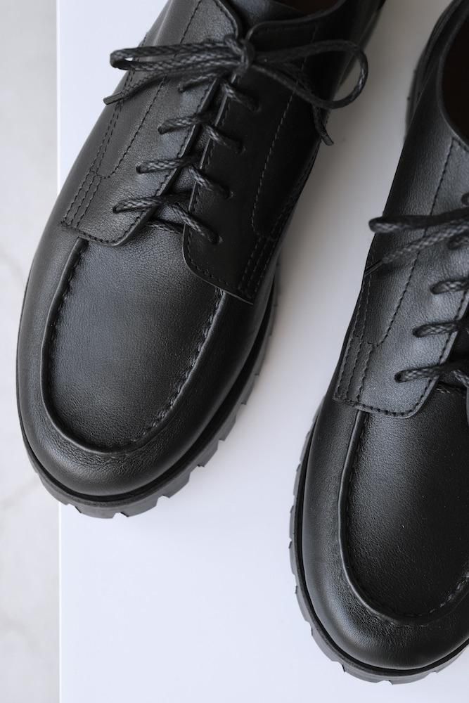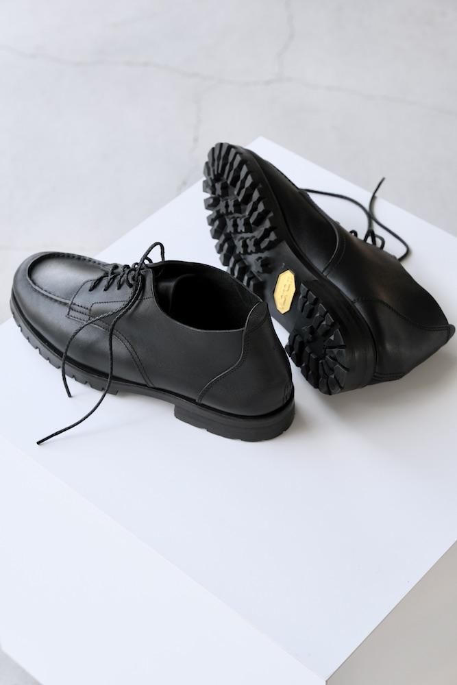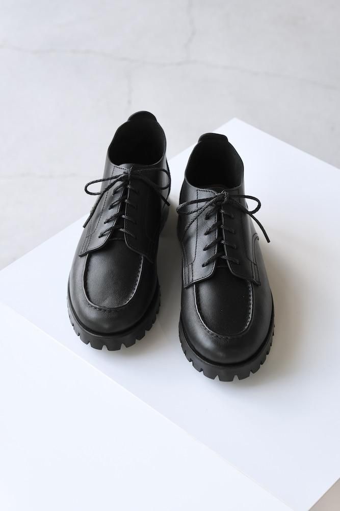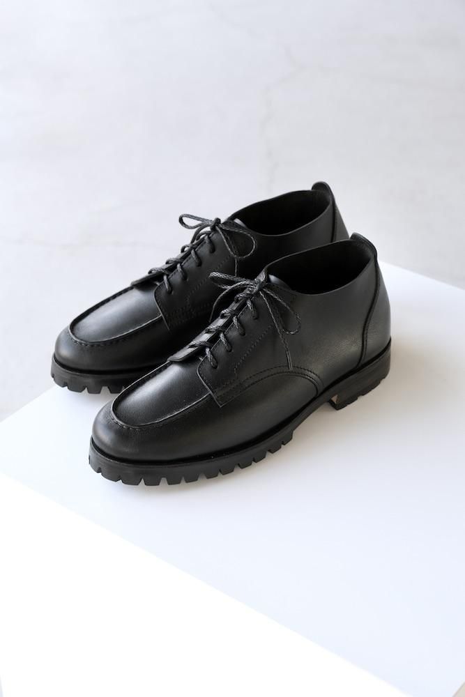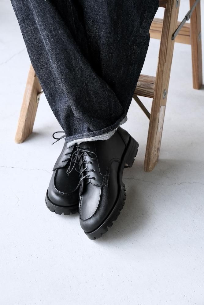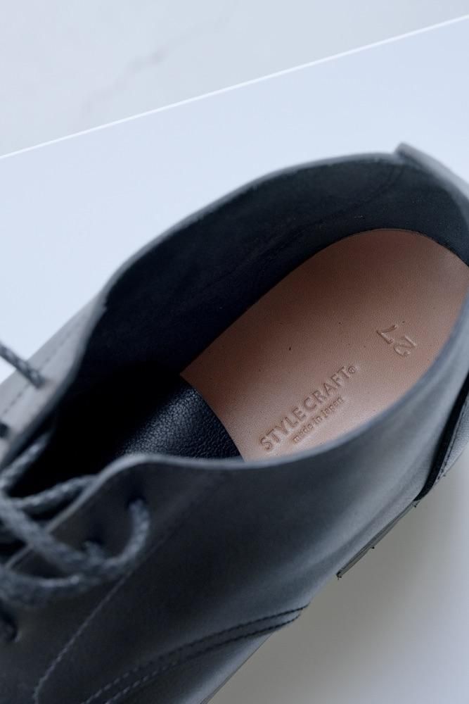 MID MOCA(OIL GRAIN) 『STYLE CRAFT』らしい主張のないデザインが魅力的な外羽根式Uチップのレザーシューズです。素材には天然の渋で鞣したオーバーウェイトキップ(子牛と成牛の間に当たる牛革)にオイルを沢山染み込ませており、程よい厚みながらも、軽く、しなやかでキレのある風合いと全体に入った細かな天然のシボ模様と光沢が特徴です。使うほどに艶が出て、味わい深くなる革の質感は『STYLE CRAFT』のレザーならではの魅力をお楽しみ頂けます。アウトソールには『VIBRAM』社製のタンクソールを採用。耐久性と耐水性が高く、安定感のある履き心地が特徴です。オン・オフ問わず、大人が履けるレザーシューズです。(フォーマルシーンで使用できる丸紐も付属します)