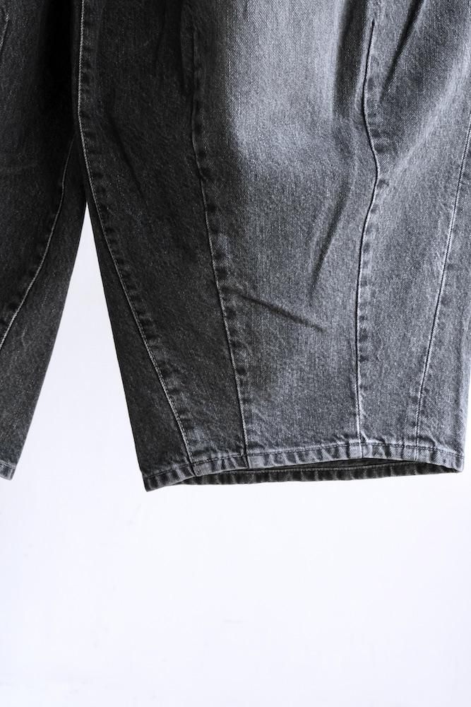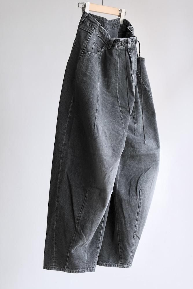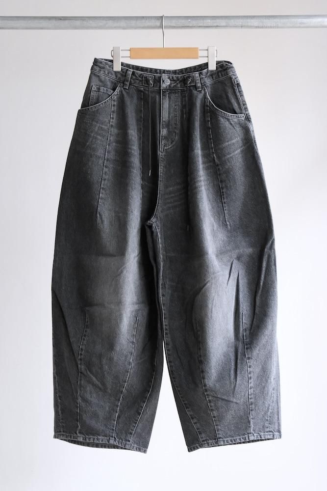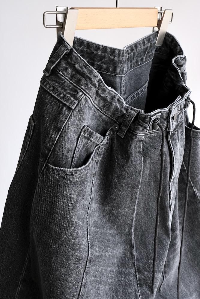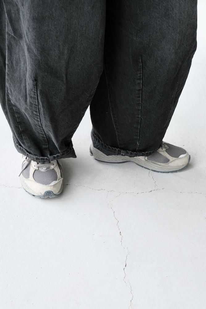 “膝出る=HIZADERU”の略称H.D.パンツ。ウエストと裾のダーツ処理によってフロントが大きく膨らんだ、独特のシルエットが魅力の定番的なボトムスです。5ポケットのデニムパンツをベースにして、12オンスデニムにヴィンテージ加工を施し生地を柔らかくしてリアルな色落ちを実現させました。バルーンシルエットのアバンギャルドなパンツですが、意外とバランスの取り易い不思議なパンツです。開放感のあるストレスのない履き心地で病付きになりますよ。