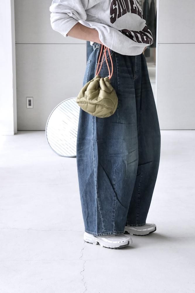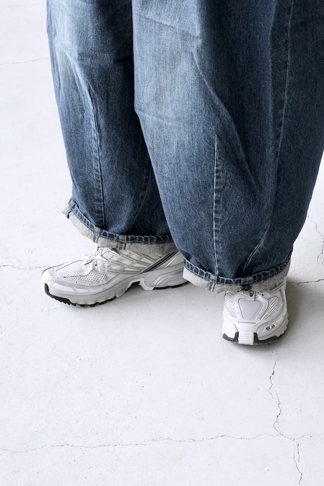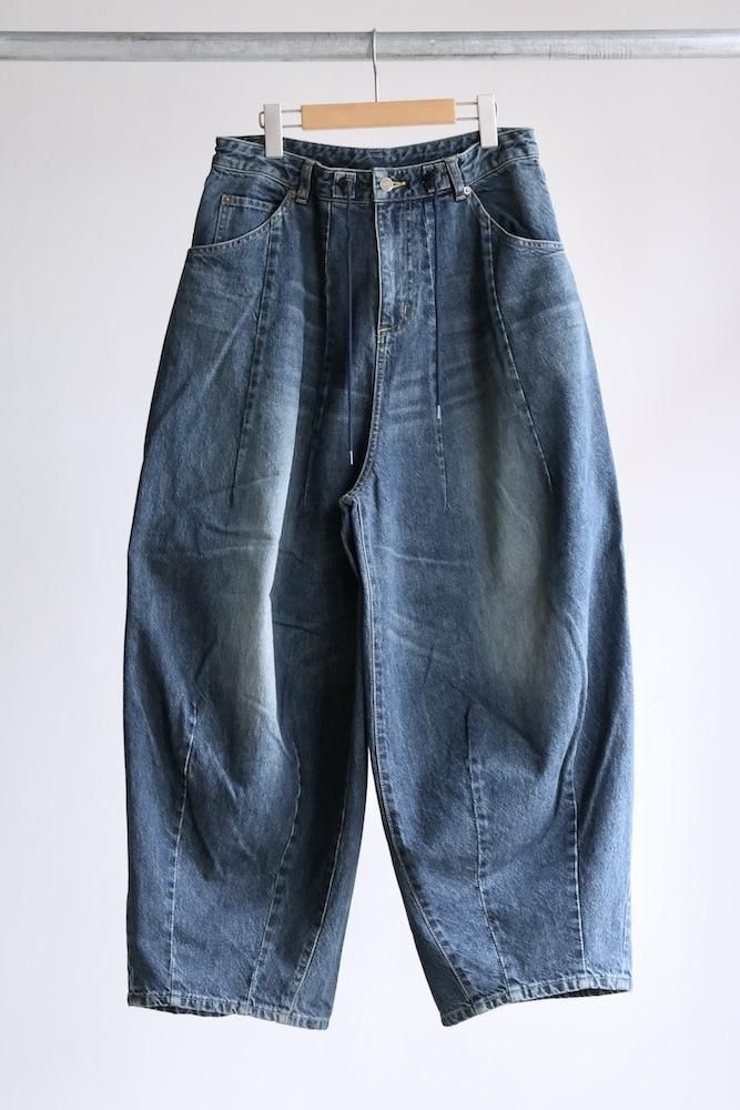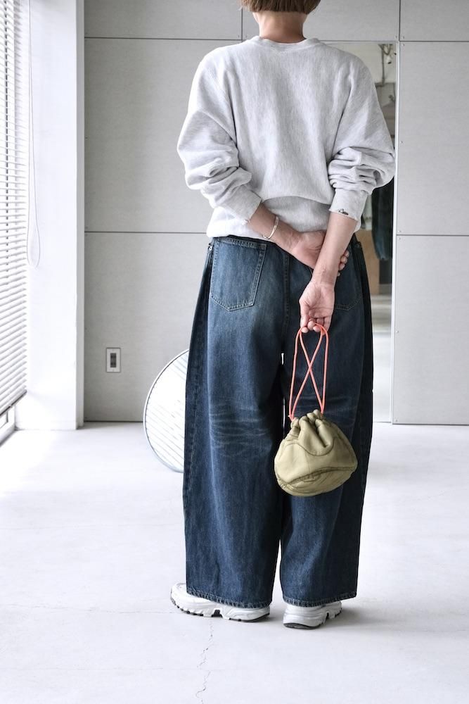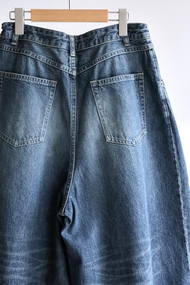 “膝出る=HIZADERU”の略称H.D.パンツ。ウエストと裾のダーツ処理によってフロントが大きく膨らんだ、独特のシルエットが魅力の定番的なボトムスです。5ポケットのデニムパンツをベースにして、12オンスデニムにヴィンテージ加工を施し生地を柔らかくしてリアルな色落ちを実現させました。バルーンシルエットのアバンギャルドなパンツですが、意外とバランスの取り易い不思議なパンツです。開放感のあるストレスのない履き心地で病付きになりますよ。