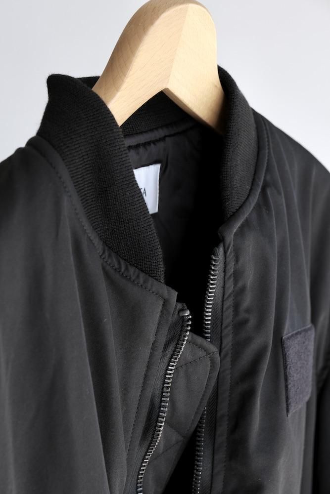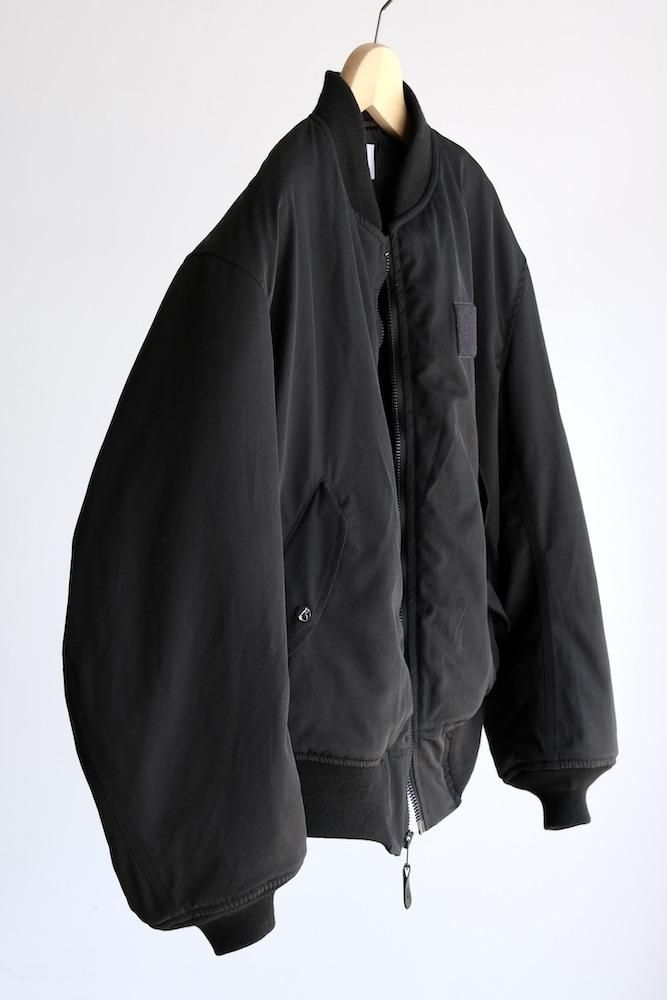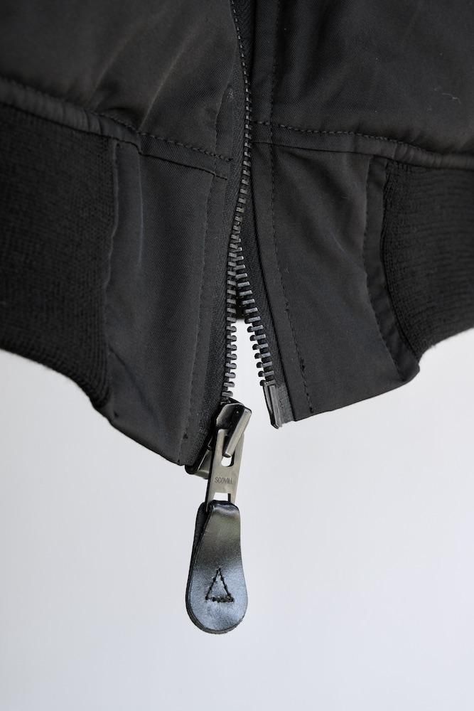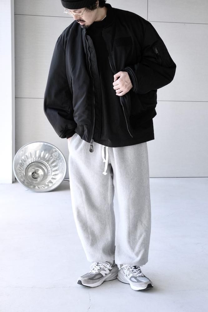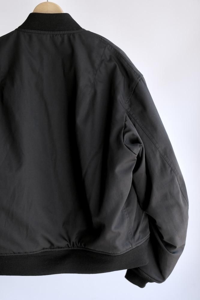 MA-1 FLIGHT JACKET 1980年代にアメリカ軍がグランドクルーに支給していたタイプをベースにした『CIOTA』定番のMA-1を今シーズンは生地とシルエットを見直してリニューアルしました。生地はナイロンにスビンコットンを掛け合わせたツイル生地を使用しており、表面はマットですが滑らかで上質な肌触りが特徴です。中綿には熱伝導性が低いTORAYの超繊細繊維を採用しており、いったん取り込んだ熱を逃がし難く、ダウンの2倍の暖かさを誇ります。また、米国スコービル社製の無骨なファスナーにも拘りました。シルエットはオリジナルよりもワイドフィットにアレンジしており着丈も少し長めで現代的なバランスの良いシルエットに仕上がっております。